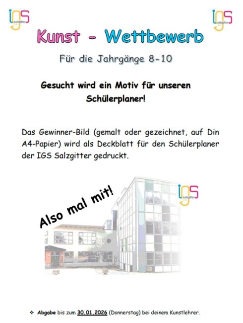 Die Abgabe erfolgt bis zum 30.01.2026 bei den Kunstlehrern.
